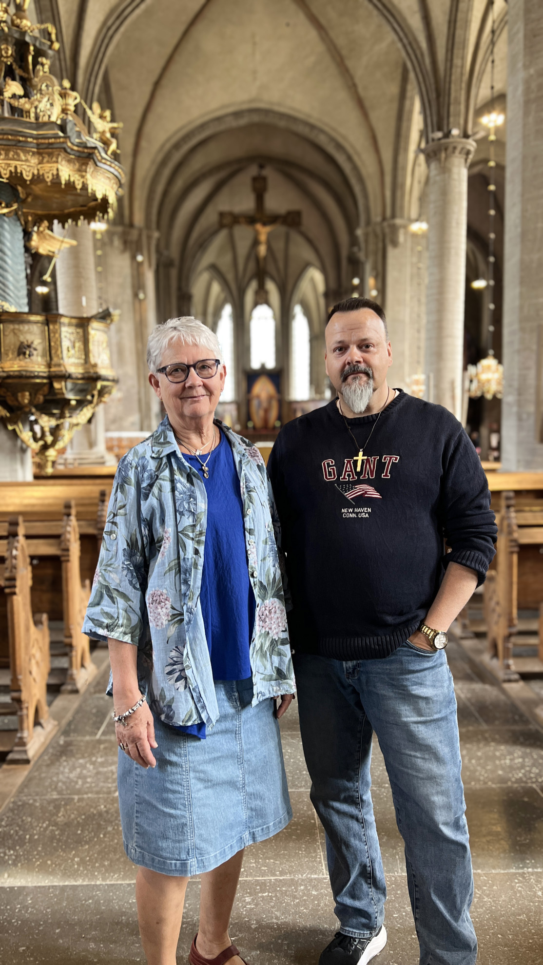 Jens tar fram en termos med kaffe ur väskan och Barbro har med sig kakor. Vi sätter oss vid ett bord i Domkyrkan och pratar om den inre resa som de båda har gjort genom den katekumenatsgrupp som dom gått i under året.